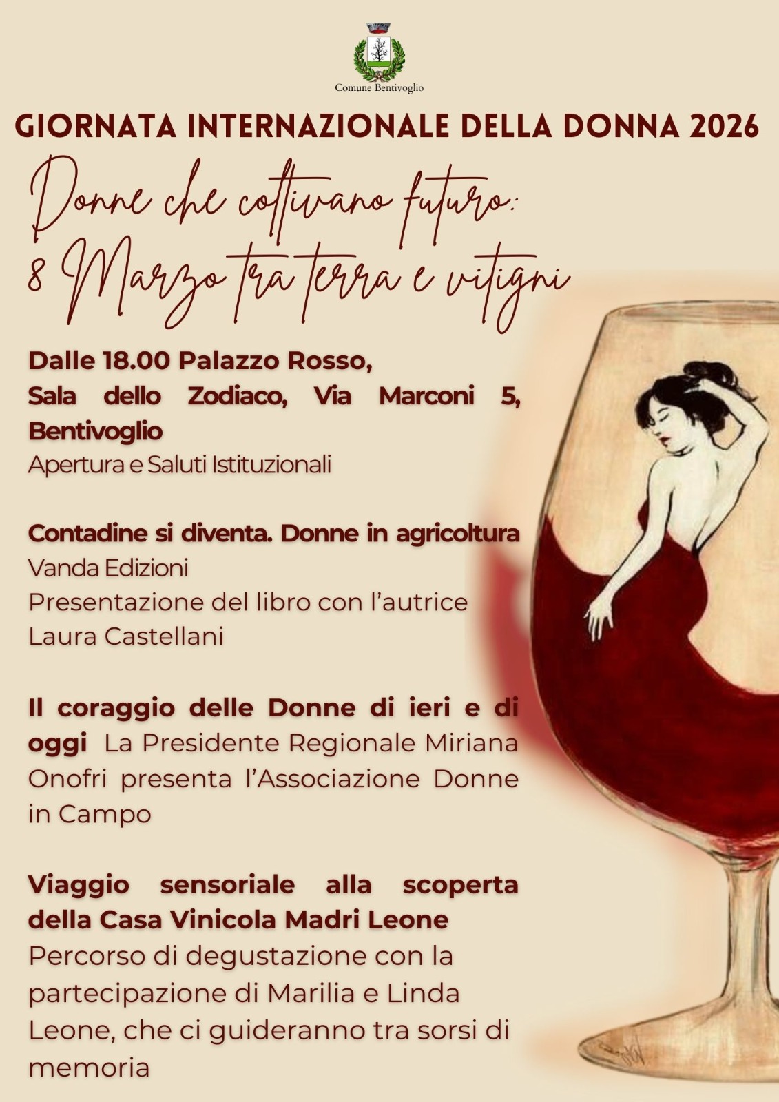 In occasione della Giornata Internazionale della Donna, il Comune di Bentivoglio promuove un’iniziativa dedicata al valore, al coraggio e al contributo delle donne nel mondo dell’agricoltura, della cultura e dell’impegno sociale.